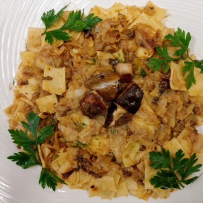 Łazanki z kapustą i grzybami + zupa dnia