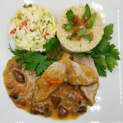 Obiad dnia: Pieczone polędwiczki wieprzowe w sosie orzechowym z mleczkiem...