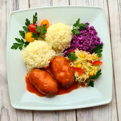 Obiad dnia: Pulpeciki drobiowe w sosie pomidorowym, ryż, surówka +...