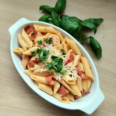 Kuchnie świata : Penne po włosku z kurczakiem i salami...